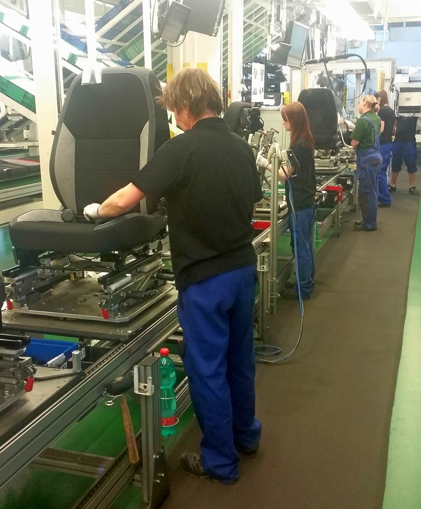 Ve dvou halách kompletujeme automobilové sedačky do vozů střední třídy a elektrického SUV (Enyaq a Elroq). Vyrábíme ve třech směnách a zákazníkovi dodáváme v systému JIS (přímo na výrobní linku zákazníka v dané sekvenci).